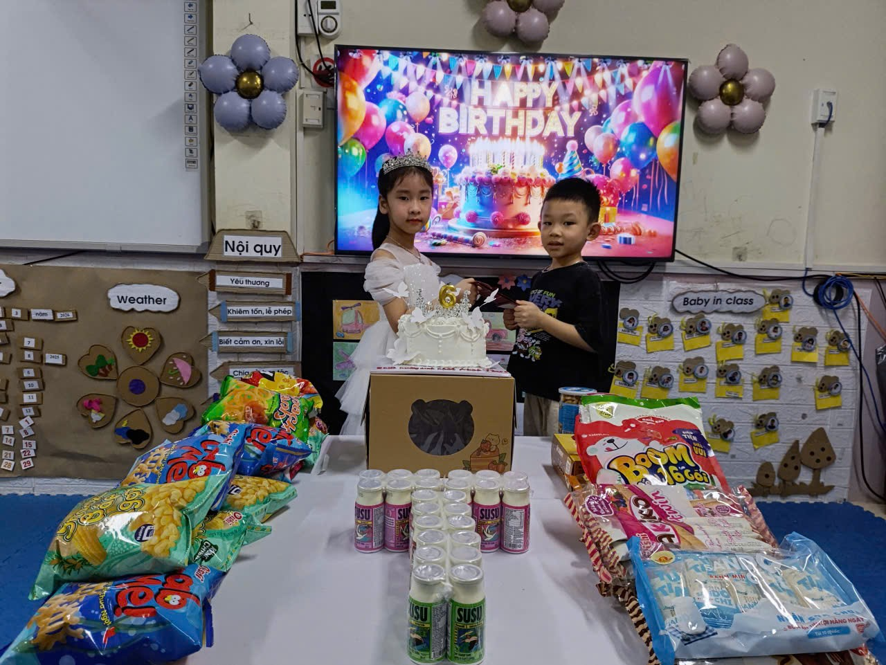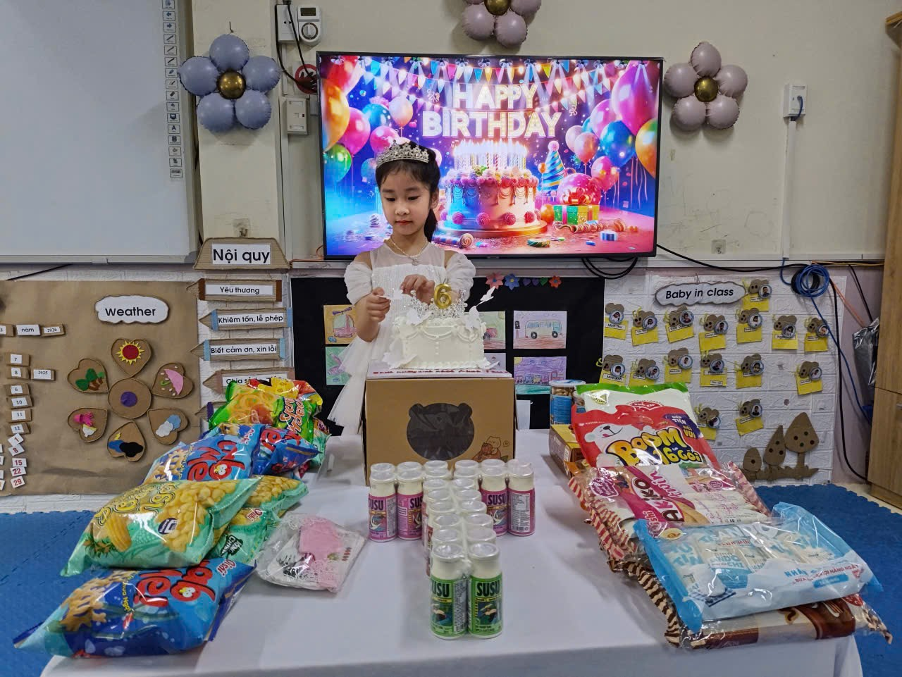 Nhân ngày sinh nhật của con, cô giáo và các bạn trong lớp chúc Minh Thư luôn mạnh khỏe, chăm ngoan, học giỏi, nghe lời ông bà, bố mẹ và cô giáo. Chúc con luôn giữ mãi nụ cười tươi tắn, lớn lên thật vui vẻ, tự tin và có thật nhiều kỷ niệm đẹp bên bạn bè và mái trường Chim Non thân yêu.